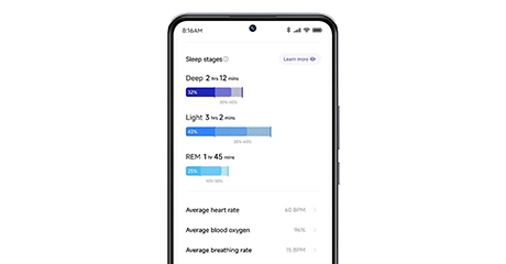 Ношение браслета на запястье во время сна позволяет точно определять стадии сна, записывать и отслеживать график сна. Фитнес-браслет также обеспечивает анализ поведения во сне, позволяя получить представление о привычках сна, что поможет улучшить его качество.